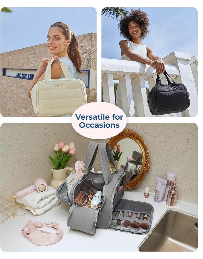 • Ultra Light and Soft Materials: Made of soft and luxurious Taslan fabric. This puffer toiletry bag feels like cotton candy, giving people a relaxed and comfortable atmosphere. Also a reliable, functional, and fashionable makeup bag. Efinitely an ideal Christmas gift for yourself, your family, and your friend
