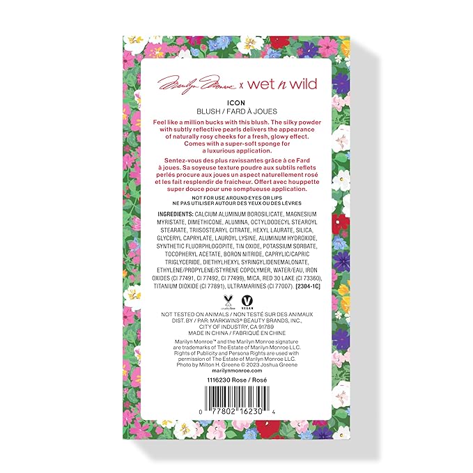 wet n wild Marilyn Monroe Collection Icon Blush β Velvety Pearlescent Powder Blush, Buildable & Blendable Formula Infused with Vitamin E, Includes Sponge Applicator, Cruelty-Free β Rose