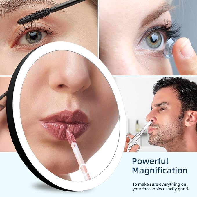 - 【5X Magnifying Mirror with Lights】Our lighted magnifying mirror is ideal for precise makeup tasks like daily eyebrow shaping, applying false eyelashes, drawing eyeliner, and shaving. It offers 5x magnification and provides clear, bright illumination.
