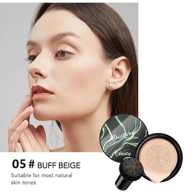 Mushroom Head Air Cushion CC Cream Foundation, Moisturizing Concealer BB Cream Nude Long Lasting Matte CC Cream Makeup Liquid Foundation (1pcs Buff Beige)