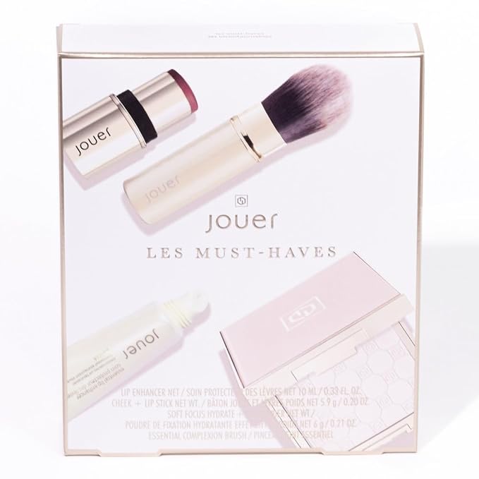 Jouer Les Must-Haves Gift Set - Translucent Setting Powder, Makeup Brush, Cream Blush & Lipstick Stick, and Lip Plumper Makeup Set - Valued at $99
