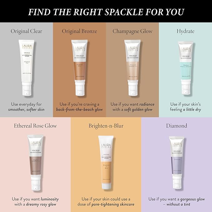 - DIAMOND GLOW BRIGHTENING MAKEUP PRIMER: Diamonds are a girl’s best friend, and so is Laura Geller’s Spackle Diamond Primer! This unique brightening formula adds a gorgeous, multidimensional glow to your skin. Like all of our Spackle Primers, the Diamond Spackle also reduces the appearance of pores and fills in fine lines to help you achieve an instantly smooth complexion. Use it as a base for long-lasting makeup and enjoy your unbeatable illumination.