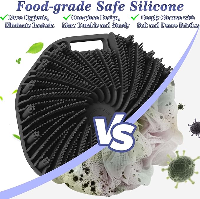 • 【Easy-to-clean & Hygienic】 Silicone material is easy to clean, quick-drying and not easy to produce bacteria. You just need to rinse it and hang to dry. Package includes: back brush x 1; soft brush x 1; face brush x 1; body buffer x 1; strong adhesive hook x 2.