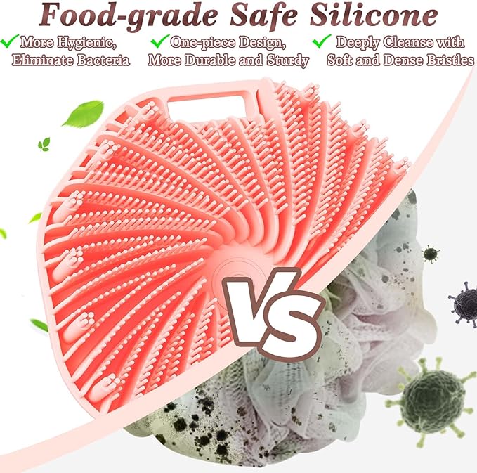• 【Easy-to-clean & Hygienic】 Silicone material is easy to clean, quick-drying and not easy to produce bacteria. You just need to rinse it and hang to dry. Package includes: back brush x 1; soft brush x 1; face brush x 1; body buffer x 1; strong adhesive hook x 2.
