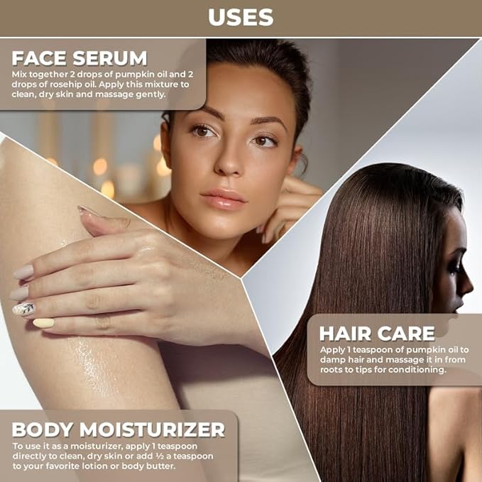100% Plant Based Organic Pumpkin Seed Oil for Hair Growth - Pure, Cold-Pressed, Nutrient-Rich Pumpkin Oil for Stronger, Fuller Hair | Rich in Vitamins & Minerals - Multi-Purpose Use for Beauty
