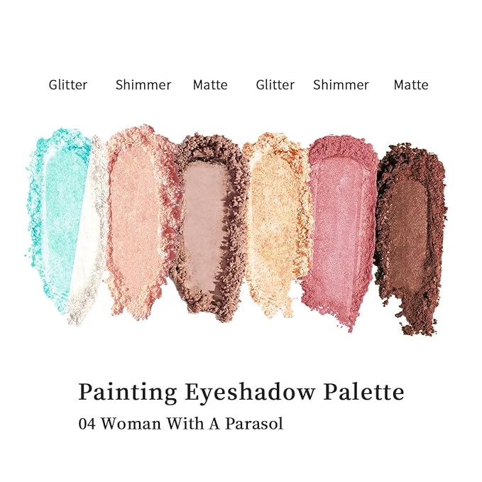 - [04 Woman with a Parasol] Capture the ethereal beauty of the sky with this unique glitter-infused eyeshadow. The nude palette is elevated with shimmer, offering a pure, crystal-clear finish.