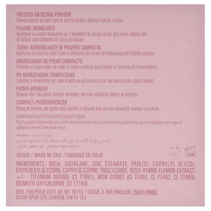 • This pressed bronzing powder instantly warms up your complexion with a smooth, velvet-matte finish