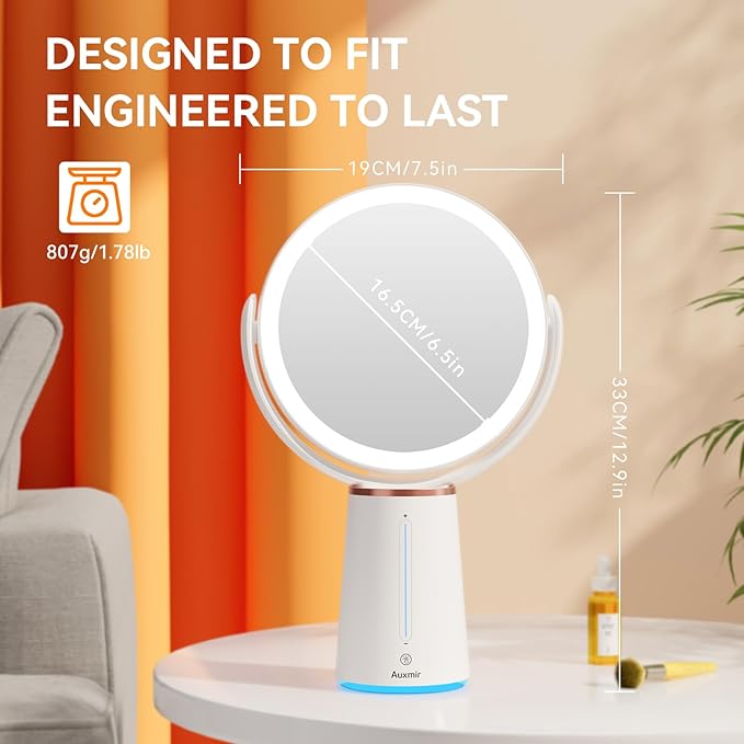 - 【Perfect Gifts 】With its modern design, stylish frame and beautiful glossy finish, Auxmir magnifying mirror with lights can seamlessly blend into any decor, such as dressing tables, desks, bedroom or bathroom. This versatile and functional mirror is the ideal gift for women, perfect for birthdays, holidays or special occasions.