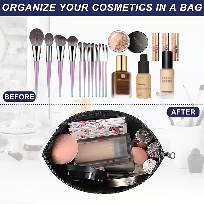 • 【Lightweight And Portable Size】9.5×5.9 inch.And the foldable design makes it easier to be folded into your suitcase. Our makeup bags are stand wear and tear and lightweight. They are made of soft polyester waterproof material,With a zipper closure for ensuring your items not easy to fall off,And easy to open and close.This fabric makes it stay sturdy all the traveling time.