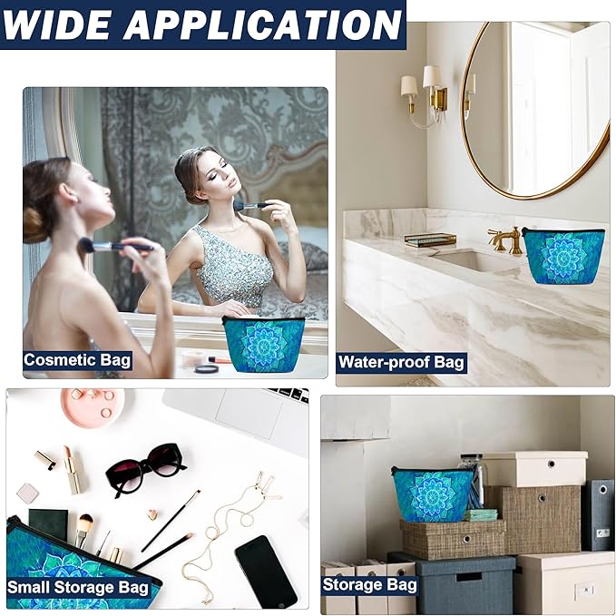 Makeup Bag Abstract Blue Mandala Cosmetic Bag for Women, Waterproof Large Capacity Travel Toiletry Organizer 9.5×5.9 Inch