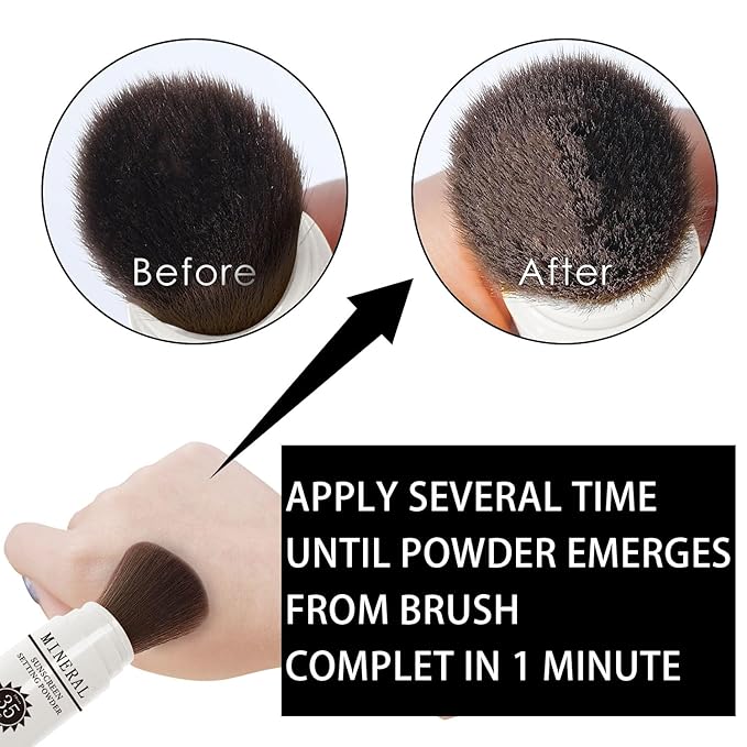 - Brush Design - The high-density quality brushes dispense a precise amount of setting powder. After applying makeup, take off the cap, slide down the brush sleeve, brush required setting powder on your face, pull up the plastic sleeve and cover the cap after finished.