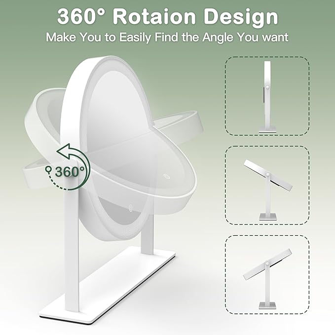 - 【Sturdy Stand and 360°Rotation】 Our light up mirror for desk features a robust stand that provides stability and support. It ensures the mirror stays securely in place while you're using it. Additionally, the 360-degree rotation capability allows you to position the mirror at any angle you desire, making it convenient to use from various positions.