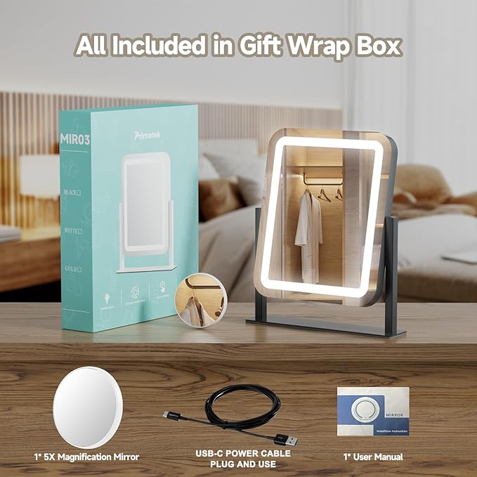 - ✅Perfect Gift Idea: Whether you're treating yourself or looking for a thoughtful gift, this LED vanity mirror is a perfect choice for makeup enthusiasts, skincare lovers, or anyone who appreciates a quality beauty accessory.