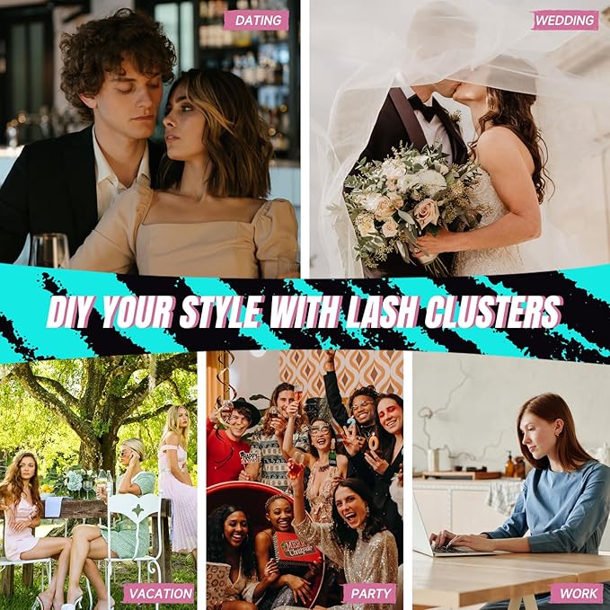 • High-Quality Lash Clusters Wispy: AMZGlRL LASH extensions kit uses 3mm ultra-fine eyelash stems. The eyelash clusters are soft, light and comfortable to wear, so you don't feel their existence at all. Easy to take up and not easy to fall apart, with multiple length options of 8-16mm, you can create a wispy look, cat eyes look, natural look or dramatic look according to different occasions and moods.
