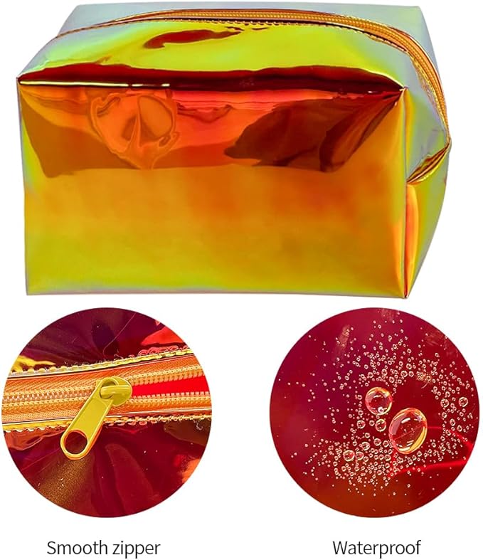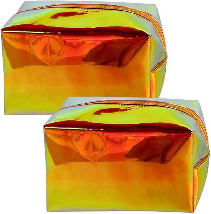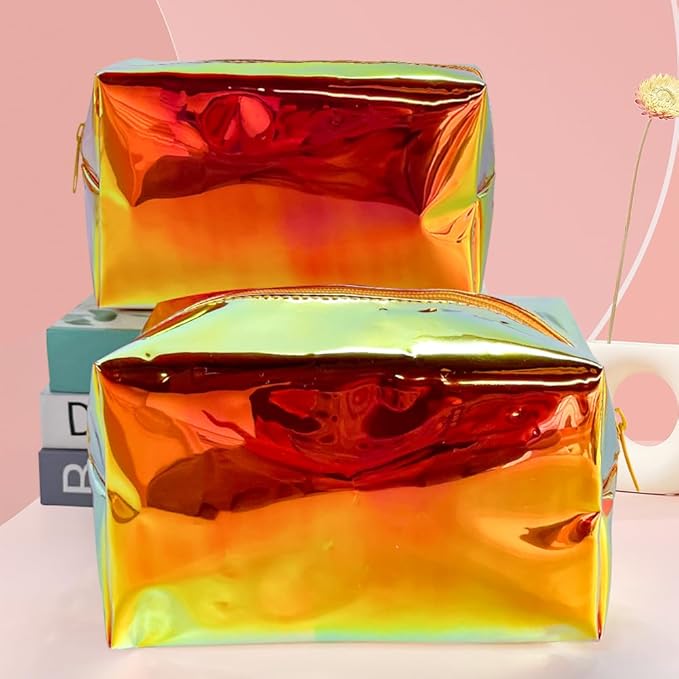 - PERFECT GIFT:translucent, glossy, and holographic design makes the makeup bags shiny, sparkly and super cute.These are cute for toiletries. In different light you may see more yellow while pink/purple appear as well. This clear cosmetic bag is a perfect gift for your friends, family and loved ones.