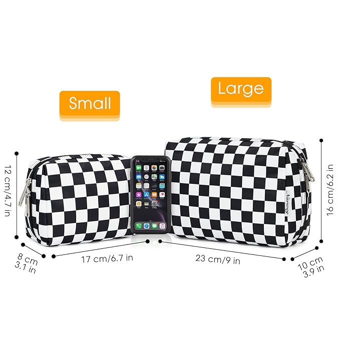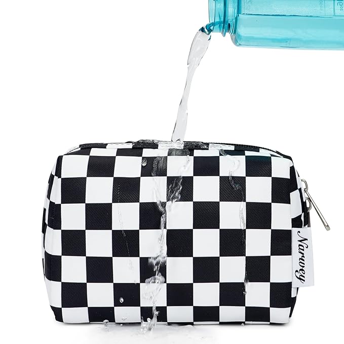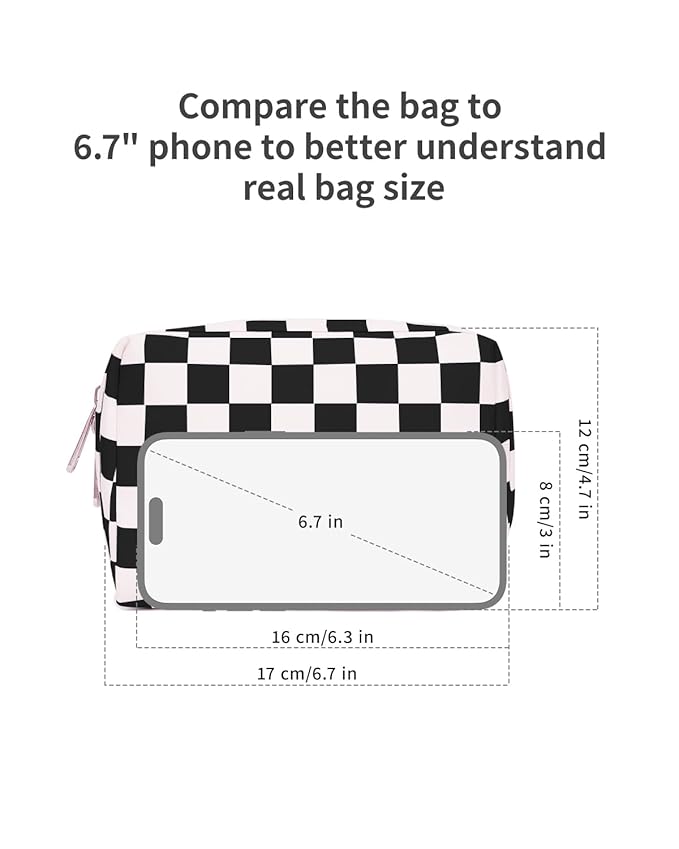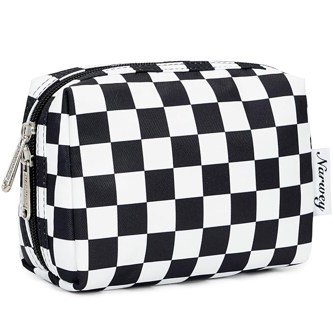 Narwey Small Checkered Makeup Bag for Purse Mini Cosmetic Bag Travel Makeup Pouch Zipper Pouch Cute Make up Bags with Compartments for Women Girls (Black Checkerboard, Small)