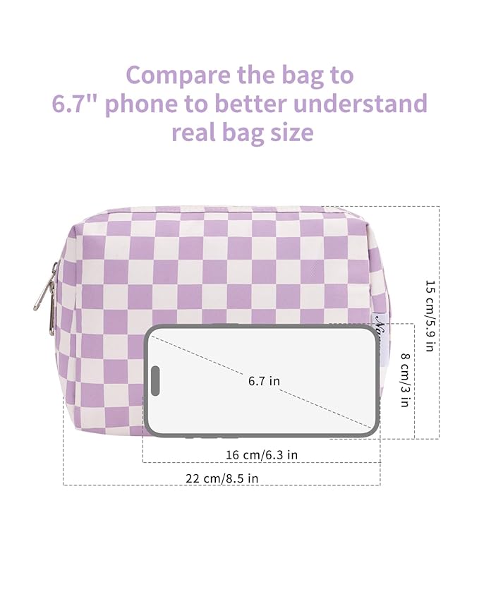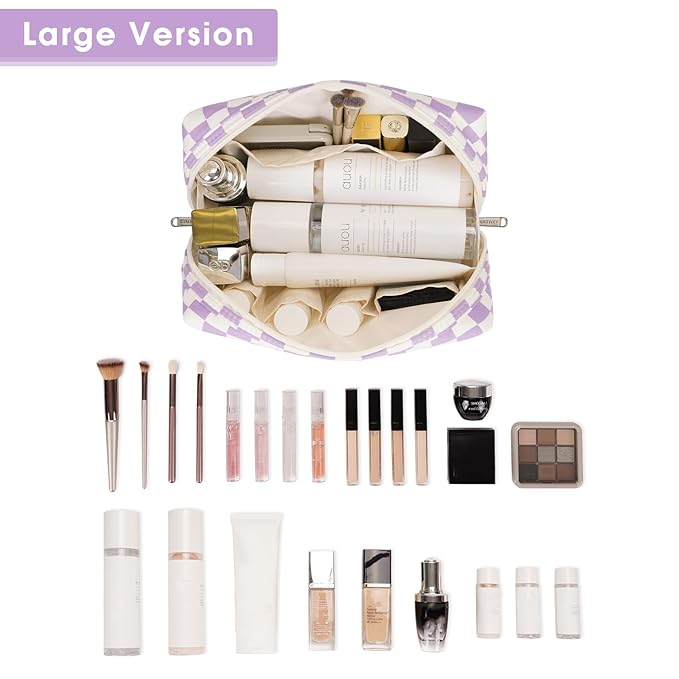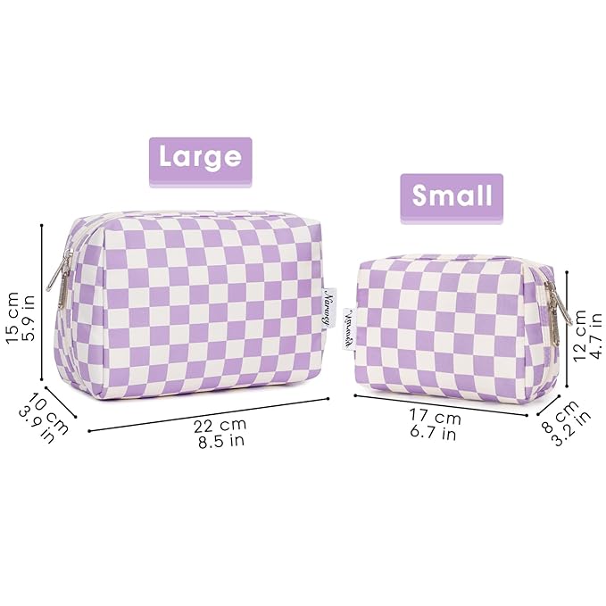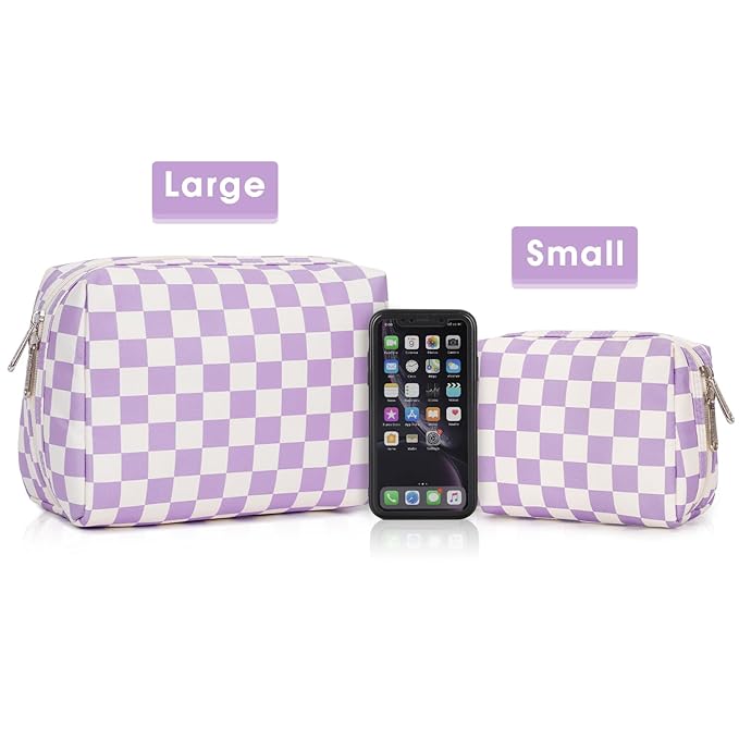 Narwey Checkered Makeup Bag Travel Cosmetic Bag Organizer Toiletry Bag Make Up Bags with Compartments for Women Girls (Large, Purple Checkerboard)