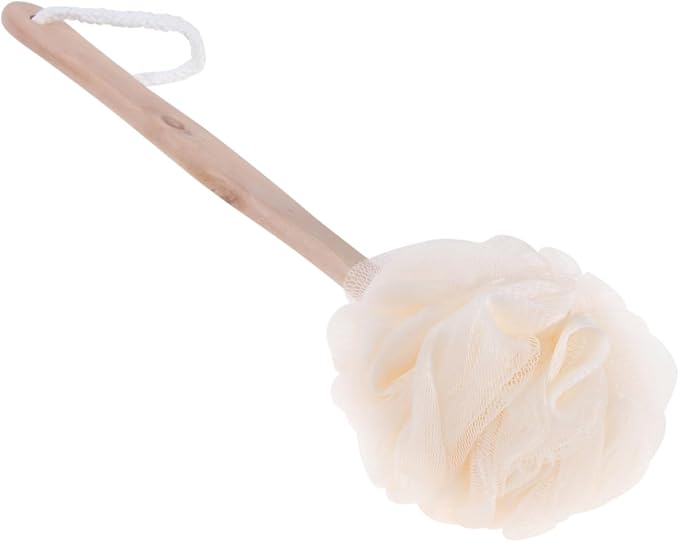 - Shower brush with bristles: πππbath sponge brush long handle loofah shower bath exfoliating scrubber back brush pouf mesh , smoothing rough areas of skin such as the feet and elbows.
