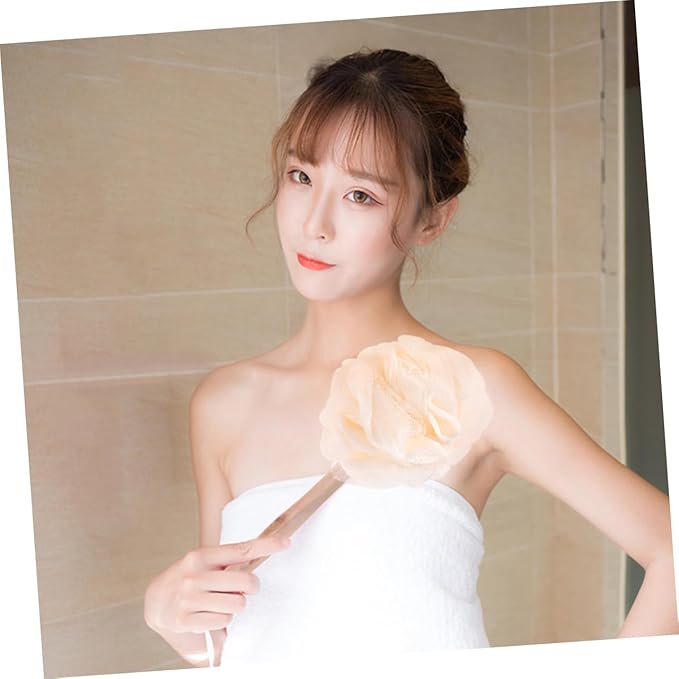 3pcs Bath Sponge Brush Handle Exfoliating Scrubber for Shower Mesh Pouf Back Brush for Men and Women for Easy Cleaning of Hard Reach Areas Travel-Friendly and