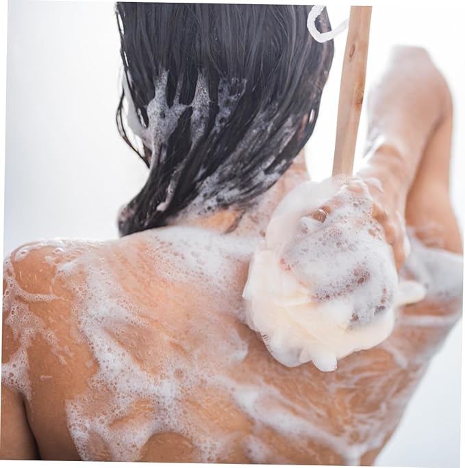 2pcs Bath Sponge Brush Handle Exfoliating Loofah Mesh Scrubber for Back and Feet Easy to Clean Suitable for All Ages for Daily Use and Travel