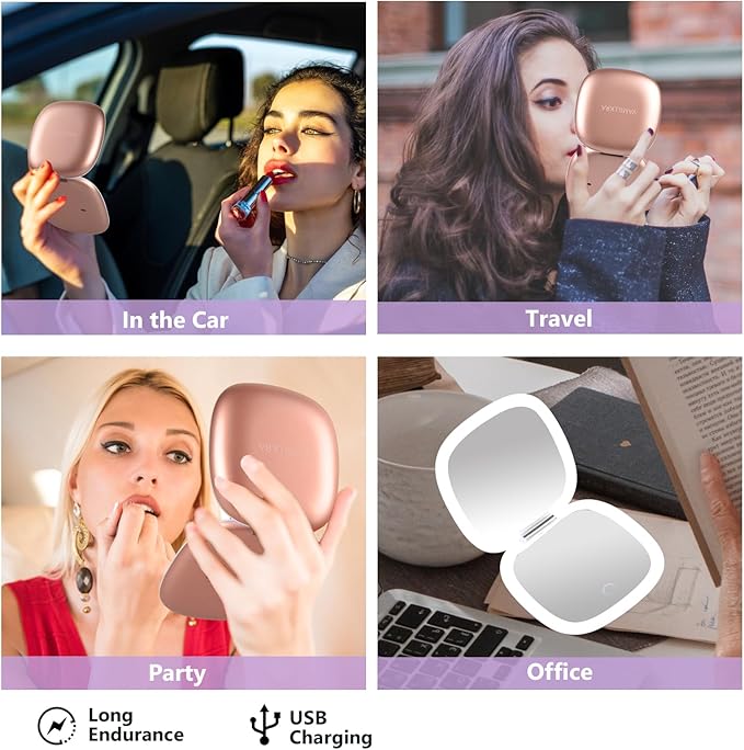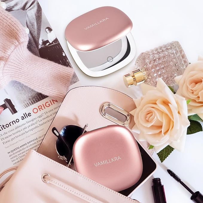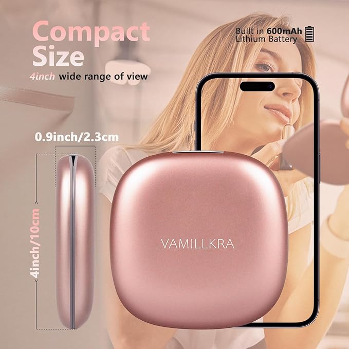 - 【Rechargeable & Portable Travel Size】The overall size of Vamillkra LED makeup mirror is about 4*4*0.9inch. It is really nice to keep it in your bag/car for perfect travel use and daily. Additionally, this portable makeup mirror can work for a long time with built-in 600mAh rechargeable lithium battery, no need to recharge frequently. Take it everywhere whenever you need the mirror!