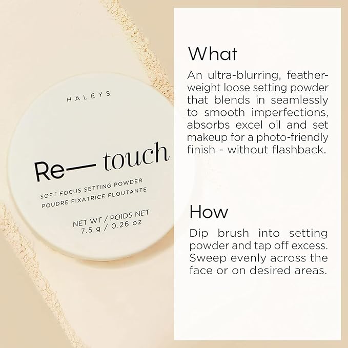 - HOW: Apply Re-fine Soft Matte Poreless Primer directly to skin using a sponge, brush or finger and blend outward. Dip brush into Re-touch Soft Focus Setting Powder and tap off excess. Sweep evenly across the face or on desired areas.