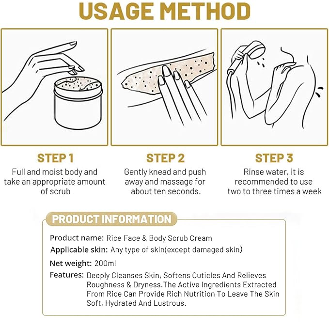 • DEEP CLEANSING: Exfoliating Rice Scrub contains beneficial ingredients that deeply cleanse and soften skin, leaving it softly smooth, without roughness or dryness.
