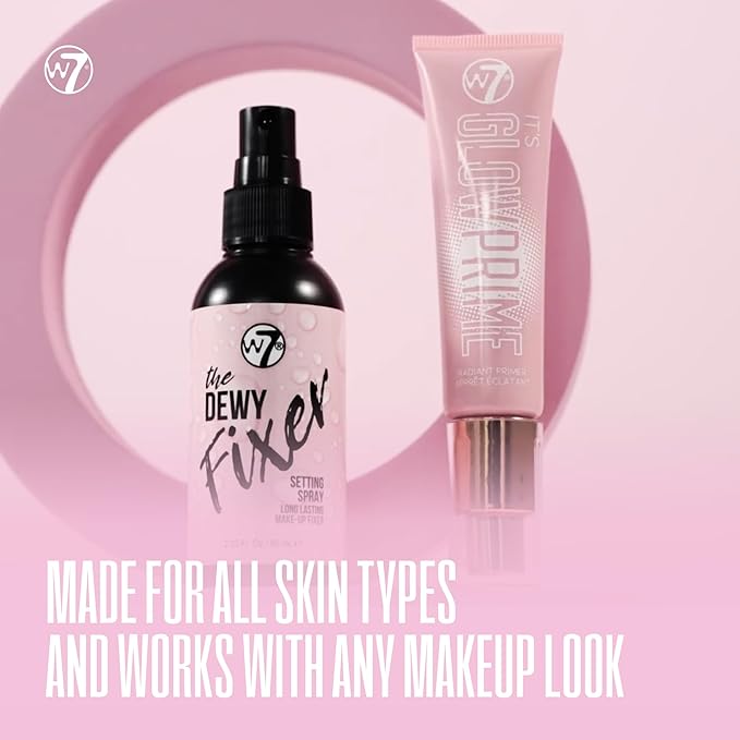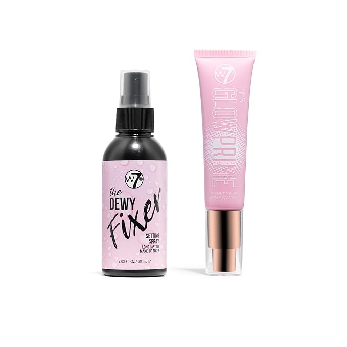 - PRIME & SET FOR A GLOWY LOOK - Elevate your makeup routine with W7 The Fixer Glow Set. This dynamic duo includes a golden-based primer for a smooth, radiant base and an ultra-fine setting spray that locks in your makeup with a hydrating, dewy finish. Perfect for achieving a natural, glowing complexion that lasts all day.
