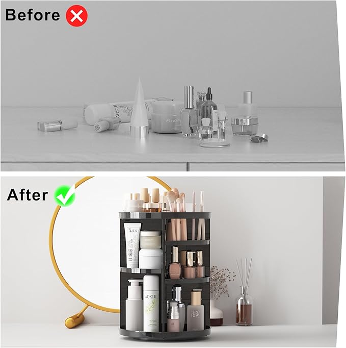 - 【Multi-Function Desk Organizer】It can be spinning organizer for vanity, bathroom countertop, bedroom dresser, desk counter and kitchen spice. It's also gift for Mother's Day, Christmas, New Year, birthday, and other good days