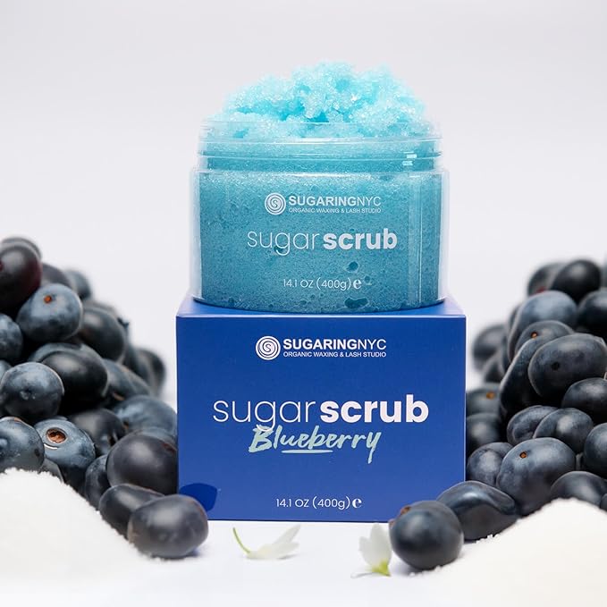 Sugaring NYC Moisturizing and Exfoliating Signature Body Scrub - Silky Smooth Skin and Ingrown Hair Prevention (Sweet Blueberry)