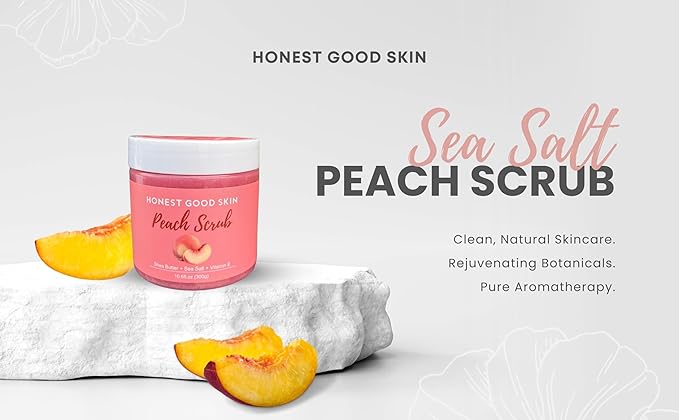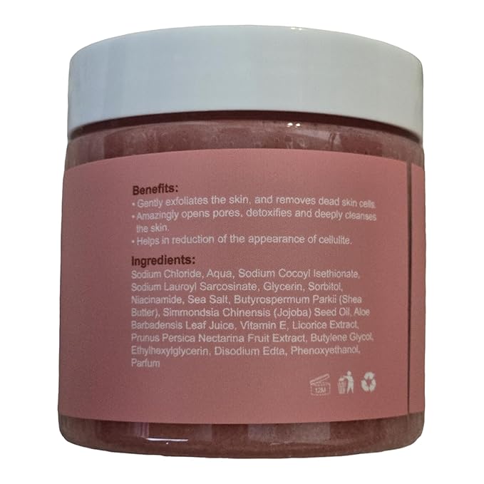 Sea Salt Scrub, 10oz Shea Butter Body Scrub, Exfoliating, Dead Skin Removal (Peach)