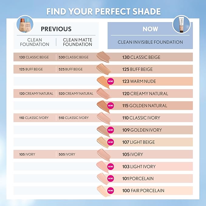 COVERGIRL Clean Invisible Foundation Makeup, Dewy & Glowy Natural Finish, Buildable Coverage, Skin-Like Smooth Look, Vegan, Light Beige, 1oz