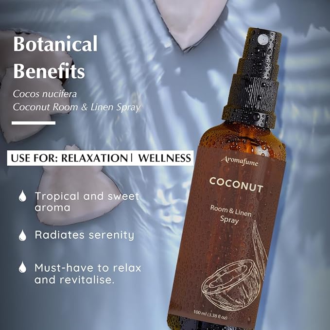 Coconut Room, Linen & Pillow Spray by Aromafume | 100ml/3.38 fl oz | with Pure Coconut Essential Oil | Aromatherapy Spray for Relaxation, Sleep & Stress Relief | Mist for Bedding, Fabrics