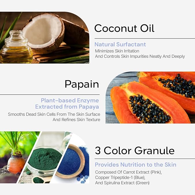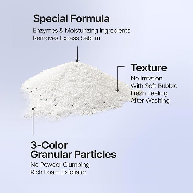 - No Powder Clumping, Rich Foam Exfoliator: Ensures no powder clumping, swiftly dissolving to create a soft foam that deeply purifies skin without any friction.