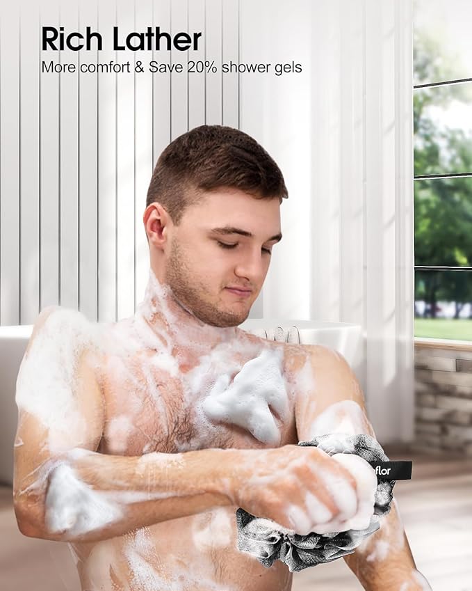 - Durable with Firm Knotting: 20-year professional experience, high-grade Durability Design with 3-Bundles and 3-Knots technology, make our shower loofah sponge firmer, more durable and not easy to break.
