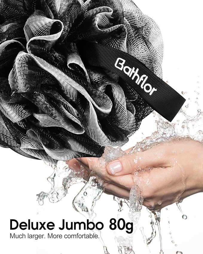 - Comfortable & Save Shower Gel: XL size Deluxe Jumbo 80g, these bath sponges create richer lather and body exfoliating for your comfortable shower, save over 20% of body wash shower gel. With micron-grade activated charcoal composition, it can effectively clean up the oil on your skin.