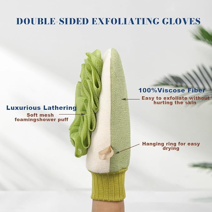 Deep Exfoliating Glove for Shower, Double-Sided Exfoliating Mitt,Massage Body Scrub Gloves for Home Spa, Eco Friendly loofah Sponge, Dead Skin Remover & Body Scrubber Exfoliator (Green)