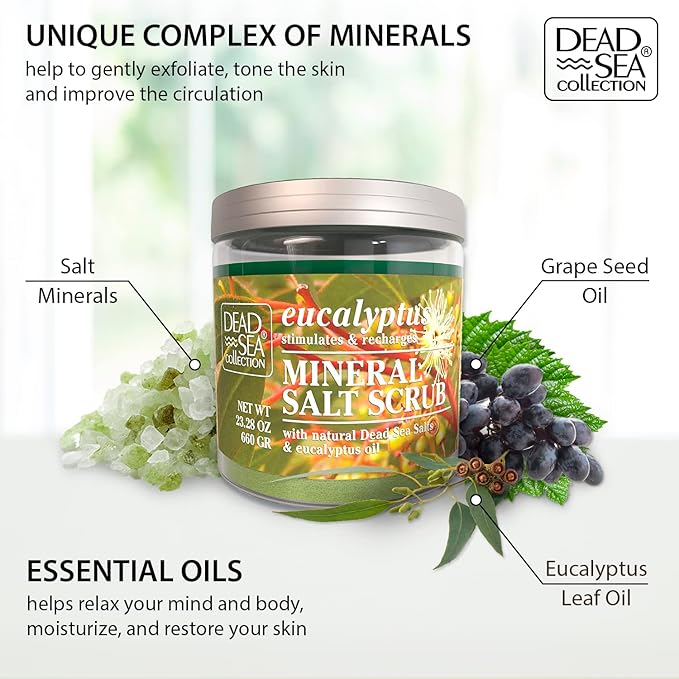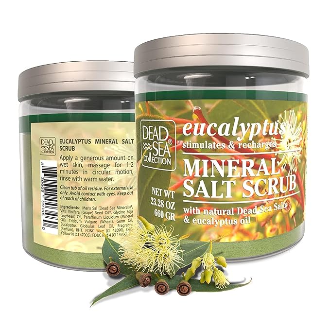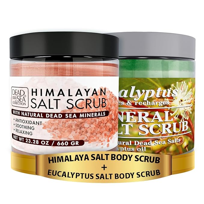 Dead Sea Collection Salt Body Scrub - Large 23.28 OZ - with Himalayan Salt and Dead Sea Collection Eucalyptus Salt Body Scrub - Large 23.28 OZ - Bundle