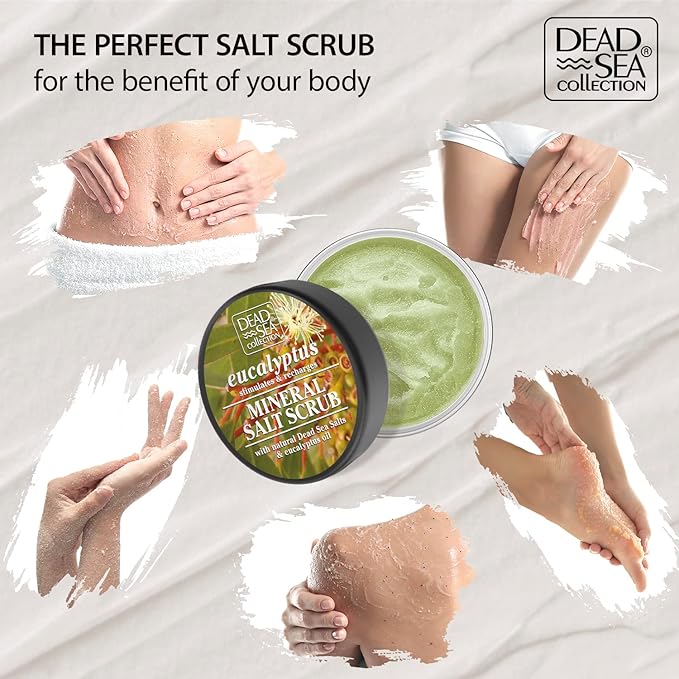 - Best body exfoliator- exfoliating with body scrub with Eucalyptus can improve the texture, tone and appearance of your skin, helps reduce the appearance of cellulite, wrinkles, fine lines, stretch marks, scars and can be used as an exfoliating foot scrub. Using a salt scrub is known to increase circulation, assist in the rejuvenation of your cells!