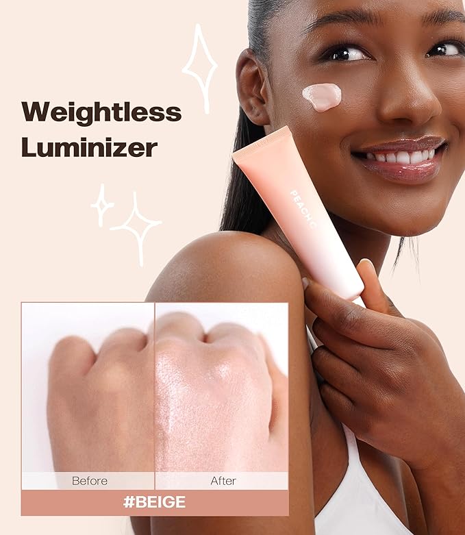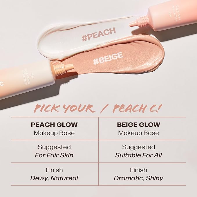 PEACH C Beige Glow Make Up Base - Hydrating, Moisturizing, Illuminating Pearl Make Up Base - Lightweight, Smudge-Proof & Pearly Shimmer Korean Makeup Primer Illuminating Face Cream (1.18 fl oz)