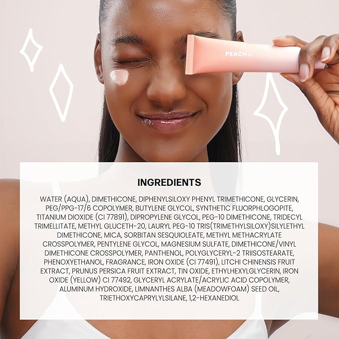 - SKIN-LOVING INGREDIENTS. Infused with the goodness of Panthenol, Peach, and Lychee Fruit Extracts, Peach C Makeup Moisturizer Base gives your skin the care it craves. Meadowfoam Seed Oil adds a boost of moisture while creating a barrier to lock it in. Itβs skincare-meets-makeup magic!