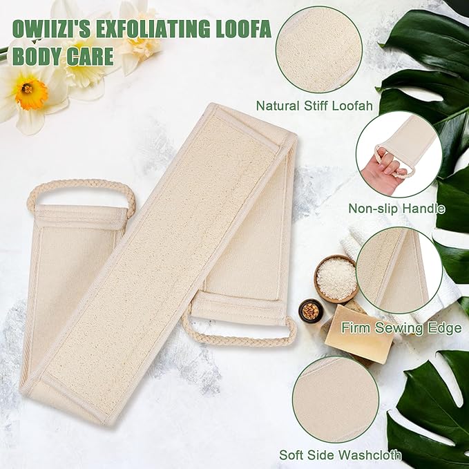 - Effect - Transform your daily shower routine with OWIIZI's loofah exfoliating body scrubber.Indulge in the ultimate Bath experience with OWIIZI's loofah sponge! Perfect for reaching your back and exfoliating your skin,remove sweat dirt and oil, relieve fatigue.Professional bath brush fit for ladies, men and elders.