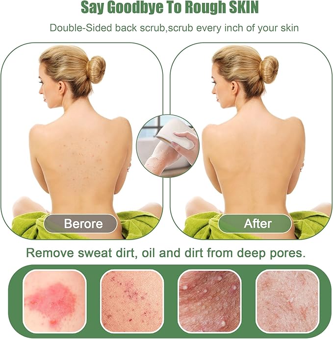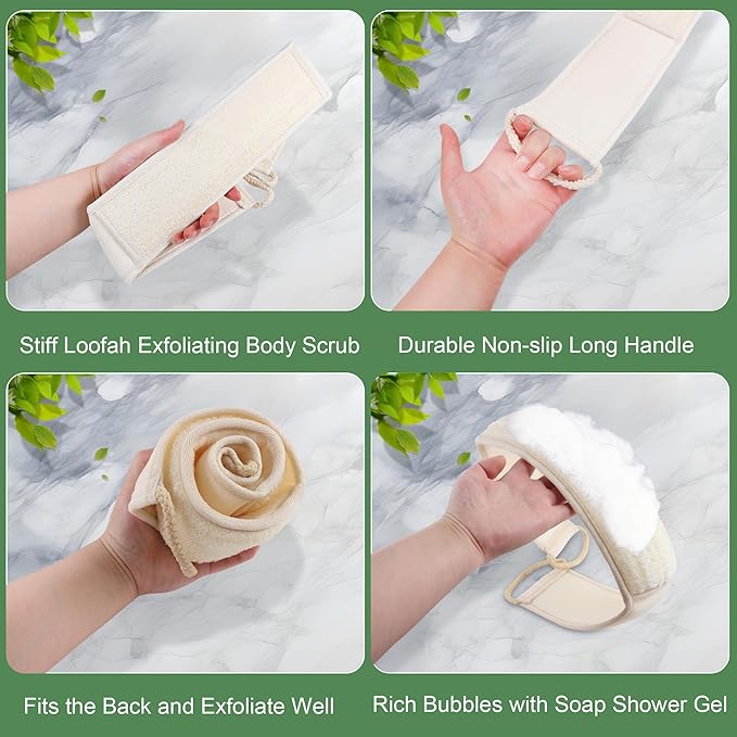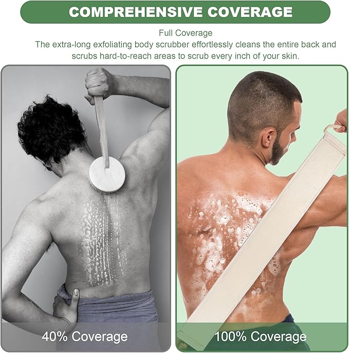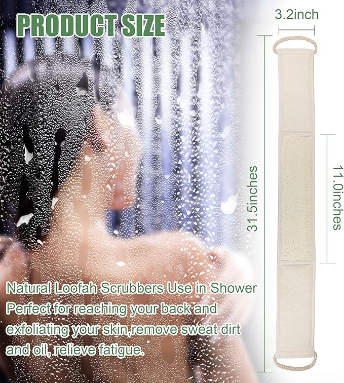 - Full Coverage - The extra-long exfoliating body loofa (31.5*3.2 inches) effortlessly cleans the entire back and scrubs hard-to-reach areas to scrub every inch of your skin. Without the help of others, our back scrubber is enough to get the job done and is more convenient for daily use.