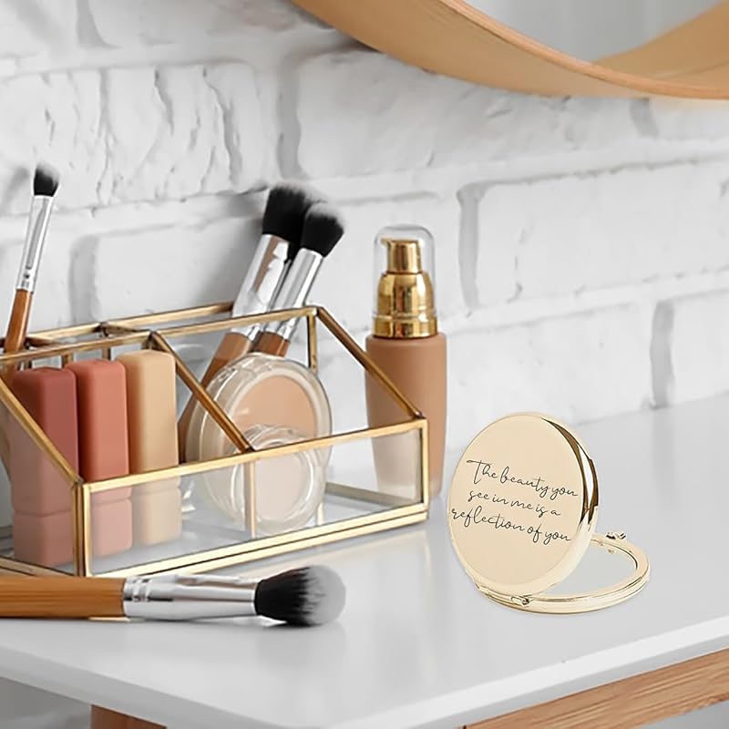 Love, Georgie "The beauty you see in me is a reflection of you" Pocket Mirror. Gift for Weddings, Birthdays, or Mother's Day. Compact Mirror for the Mother of the Bride or Groom. (Rose Gold)