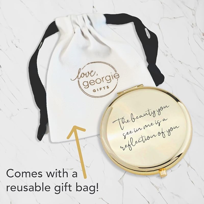 Love, Georgie "The beauty you see in me is a reflection of you" Pocket Mirror. Gift for Weddings, Birthdays, or Mother's Day. Compact Mirror for the Mother of the Bride or Groom. (Gold)