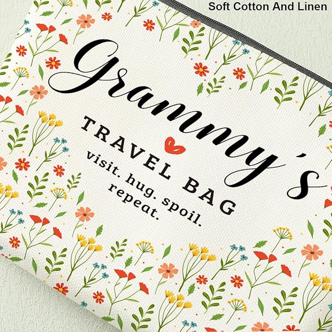 Grammy's Travel Bag Mothers Day Makeup Bag Grandma Gifts Grandma Birthday Gifts Funny Coloful Floral Cosmetic Bag for Women Nana Gigi Mimi Nanny Granny Mom Chirstmas Appreciation Retirement Gifts