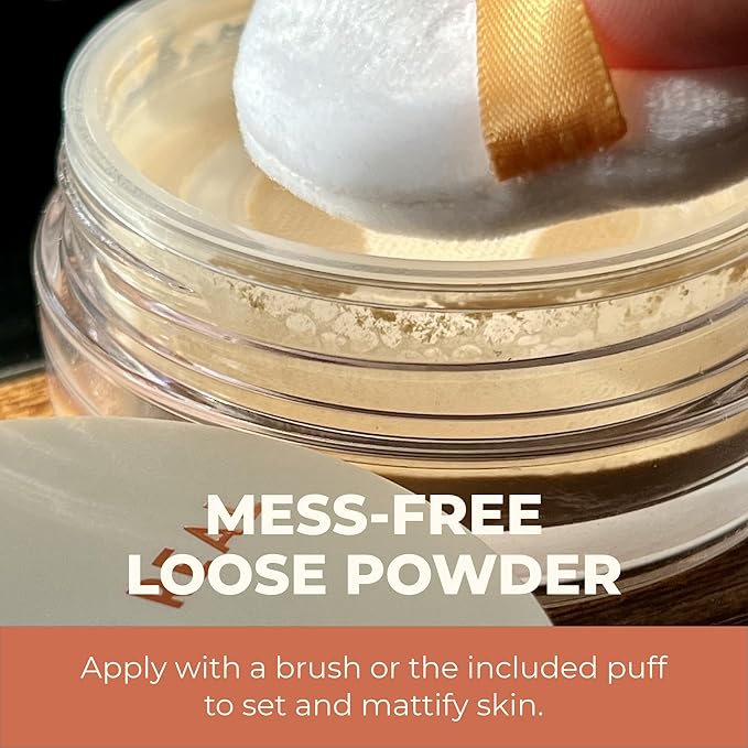 - EASY TO APPLY - Apply with a brush or the included puff to set and mattify skin. Get mess-free loose powder application with secure under cap and interior net.