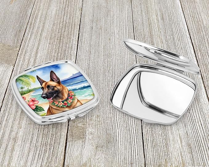 Caroline's Treasures Belgian Malinois Luau Compact Mirror Decorative Travel Makeup Mirror for Women Girls Gifts Pocket Makeup Mirror Folding Handheld