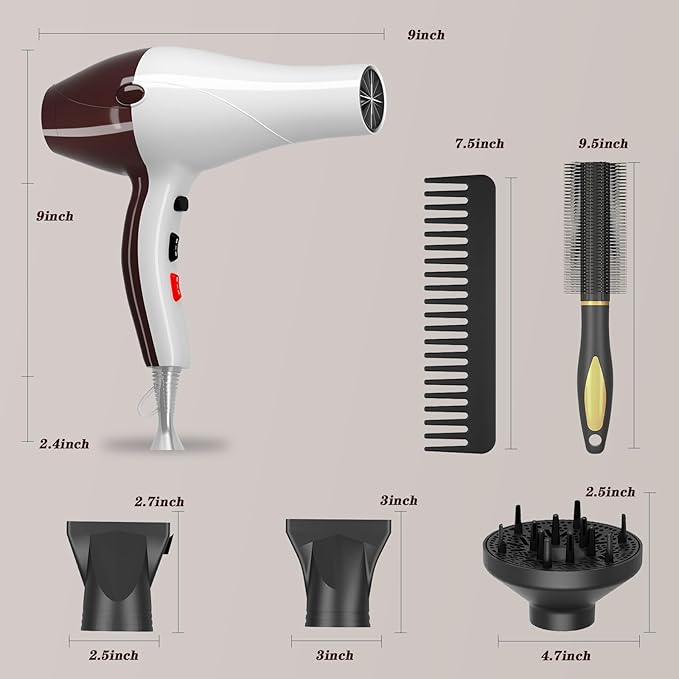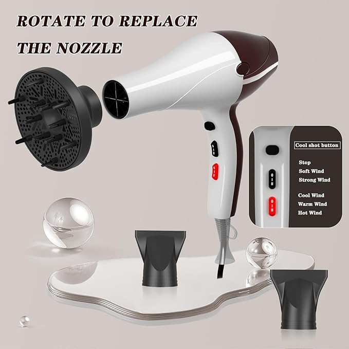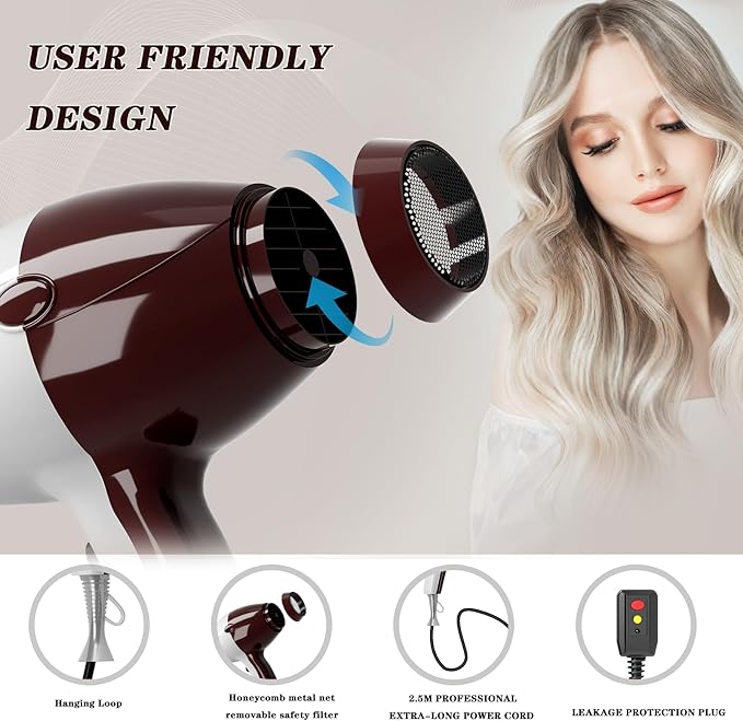 - 【Expertly Designed for Practicality】Engineered by a team of engineers and stylists, our dryer combines a lightweight design with cutting-edge technology for optimal performance. Practical details such as a securely attached diffuser, convenient hanging loop, and removable filter for easy cleaning ensure a hassle-free styling experience.