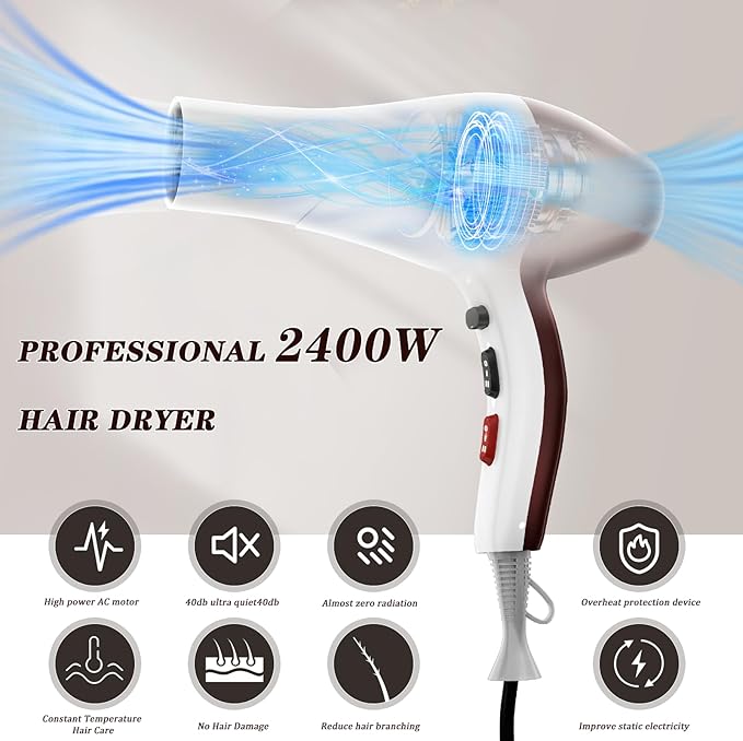 - 【Powerful 2400W Motor with HeatPro Technology】Conhaze hair dryer features a lightweight 2400W DC motor equipped with HeatPro technology,Unlike other brands with heavy and noisy motors. Experience constant temperature and concentrated airflow for faster drying, while enjoying a quieter styling experience with sound levels reduced by up to 42%.